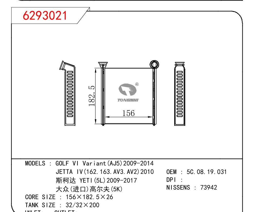• GOLF VI Variant(AJ5)2009-2014/JETTA IV(162.163.AV3.AV2)2010/斯柯�? YETI(5L)2009-2017/大众(进口)高尔�?(5K)
