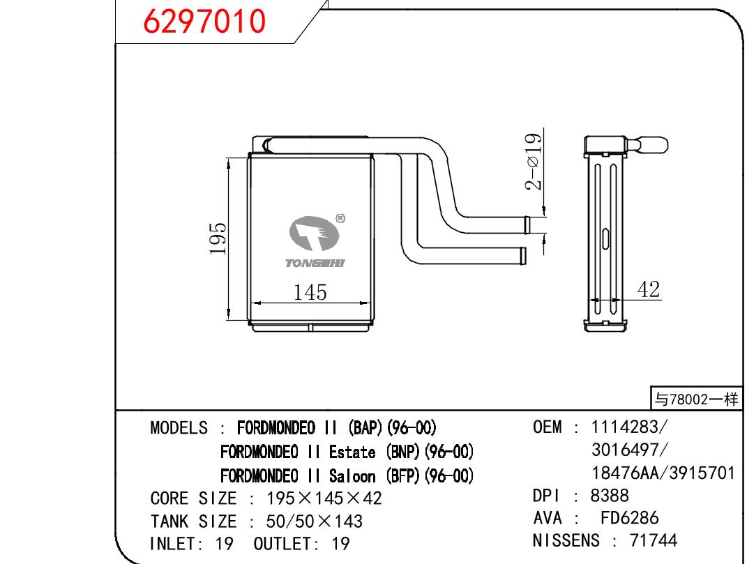 • 芯体尺寸:195*145*42