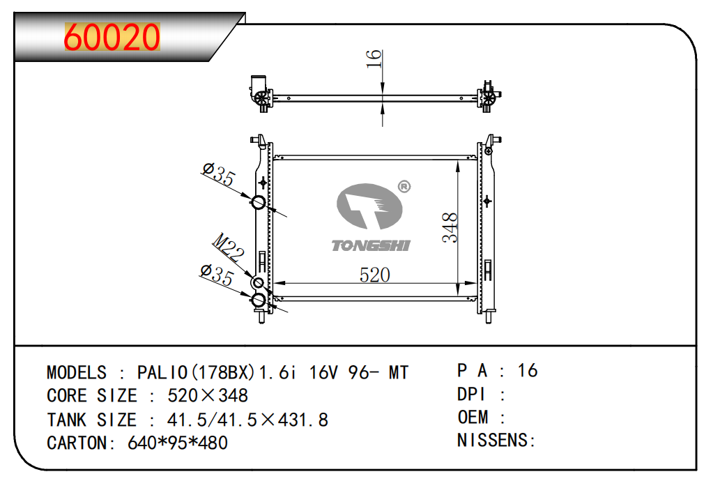 适用于沃尔沃V40 1.9TD D4192T 95- MT散热器