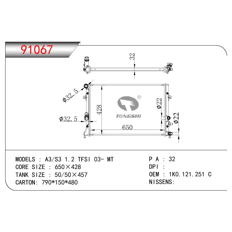 适用于沃尔沃V40 1.9TD D4192T 95- MT散热器