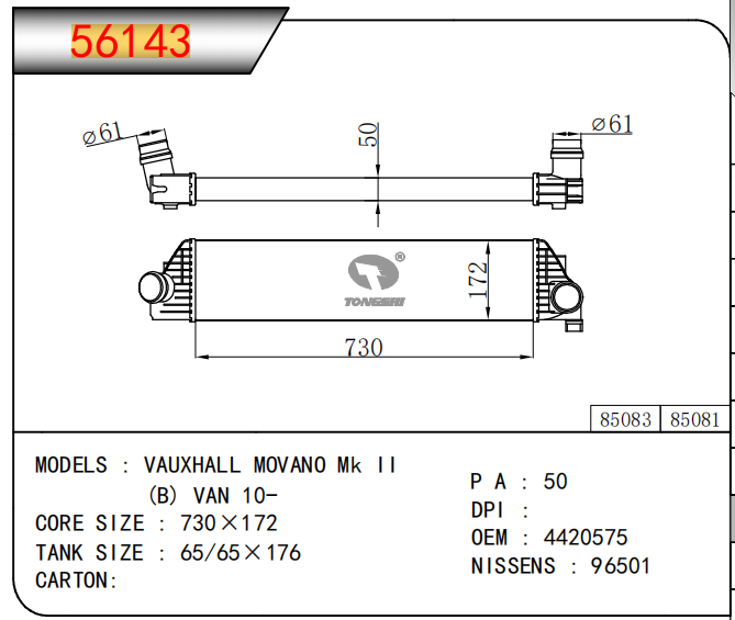 适用于沃尔沃V40 1.9TD D4192T 95- MT散热器