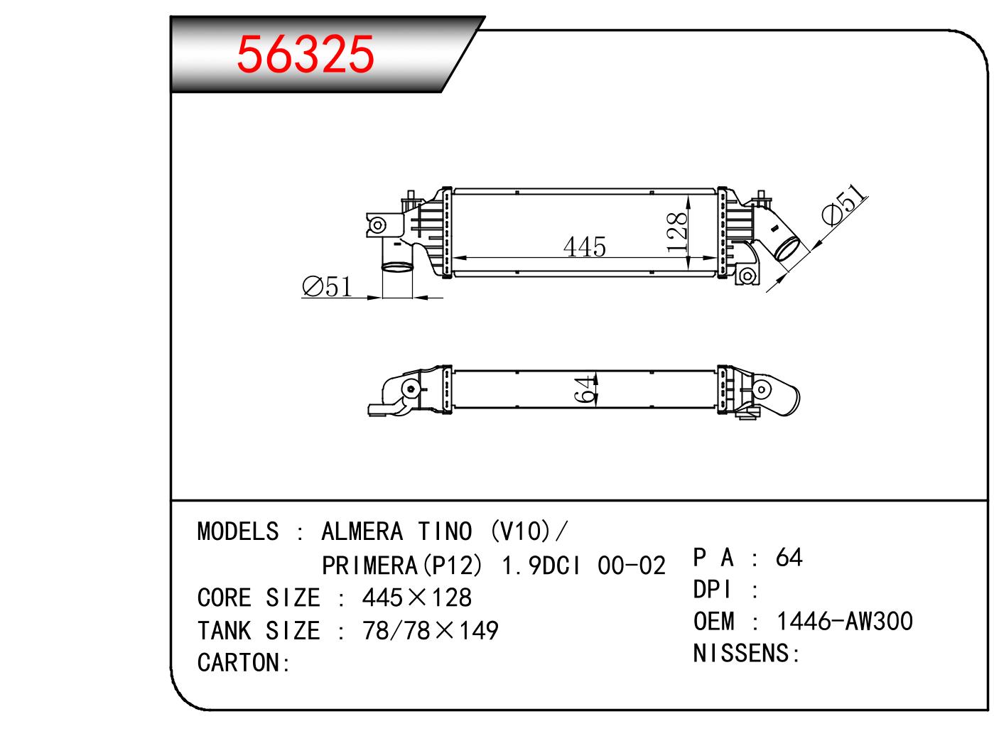 适用于沃尔沃V40 1.9TD D4192T 95- MT散热器