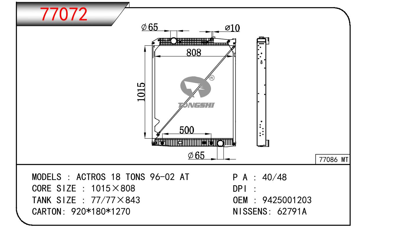 适用于奔驰 ACTROS 18 TONS 散热器 OEM:9425001203/9425002303/9425002803/9425002903/A9425001203/A9425002303/A9425002803/A9425002903