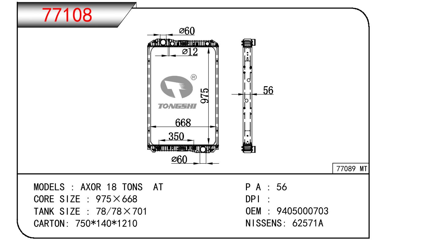 适用于奔驰AXOR 18 TONS 散热器 OEM:9405000703/9405000603/9405001803/A9405000603/A9405000703/A9405001803