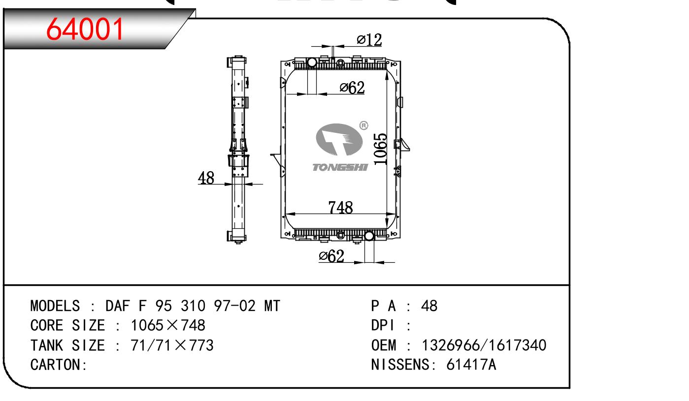 适用于DAF DAF F 95 310 OEM:1326966/1617340/1617341/1364465/1858772/1858774/1326966R/1364465R/1617340R/1617341R/81061016502