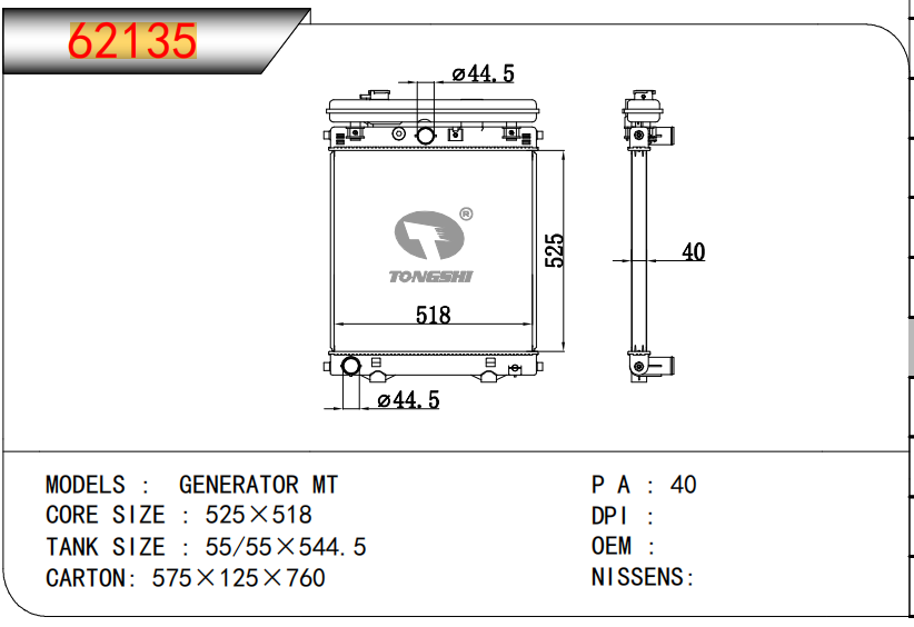 适用于沃尔沃V40 1.9TD D4192T 95- MT散热器