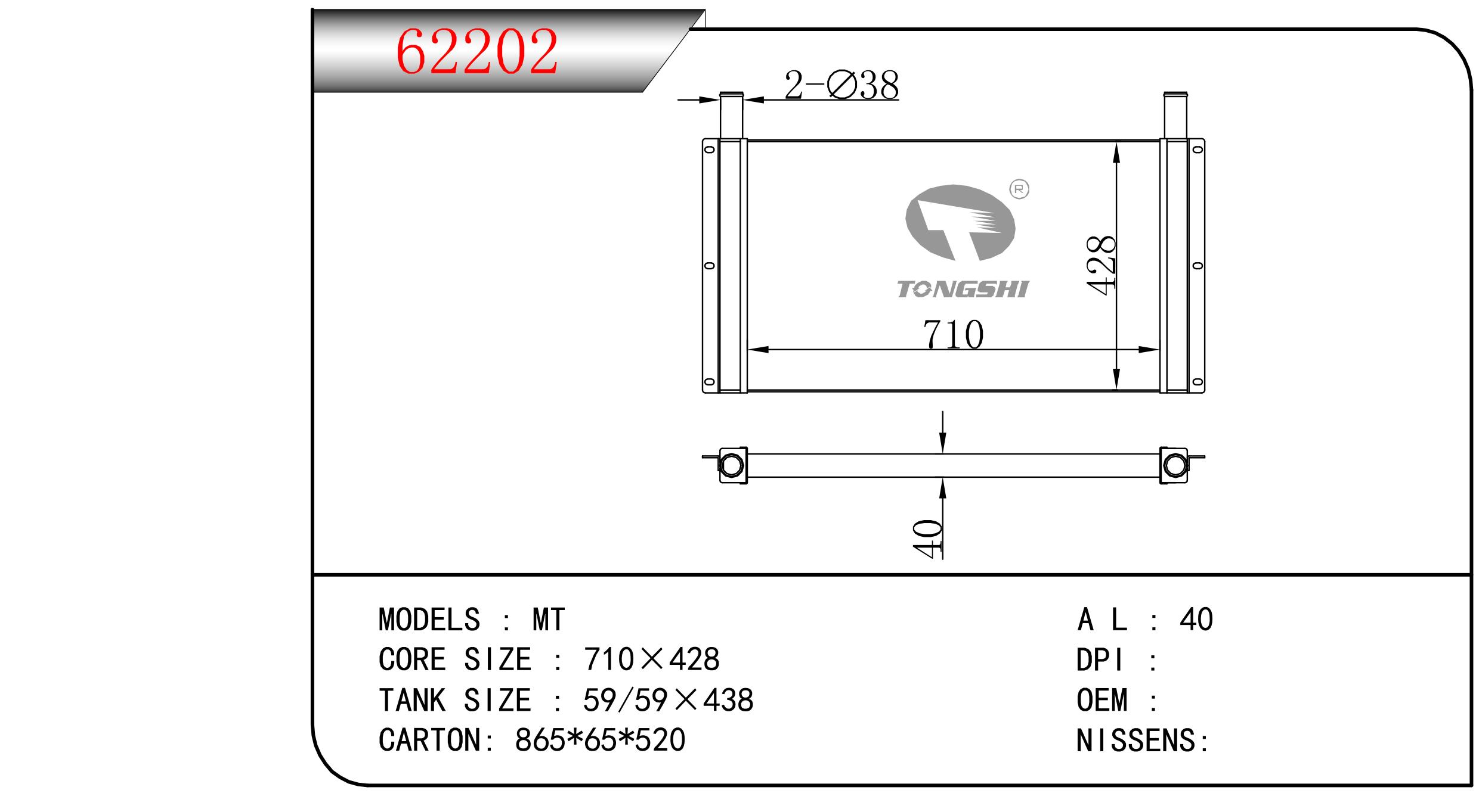 适用于沃尔沃V40 1.9TD D4192T 95- MT散热器