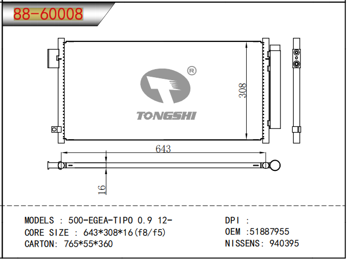 适用于沃尔沃V40 1.9TD D4192T 95- MT散热器