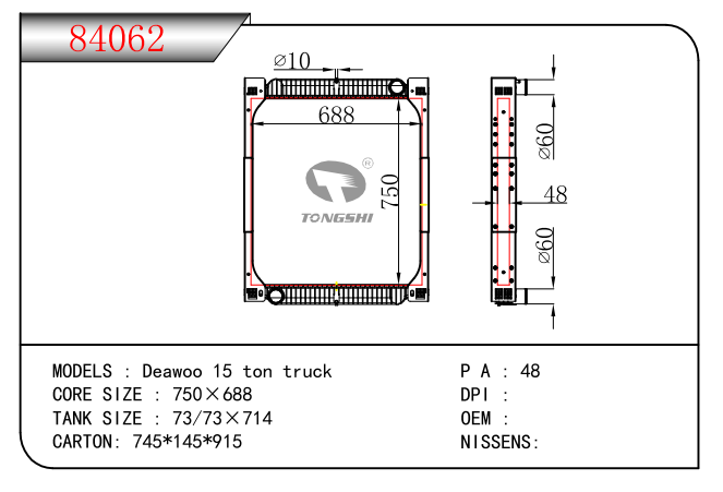 适用于沃尔沃V40 1.9TD D4192T 95- MT散热器