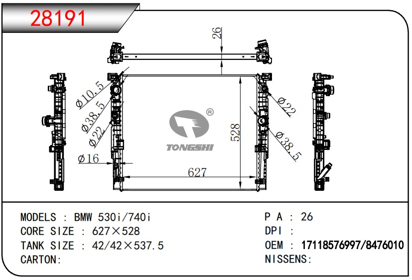 适用于宝马E30 320 i 82-93 AT散热器
