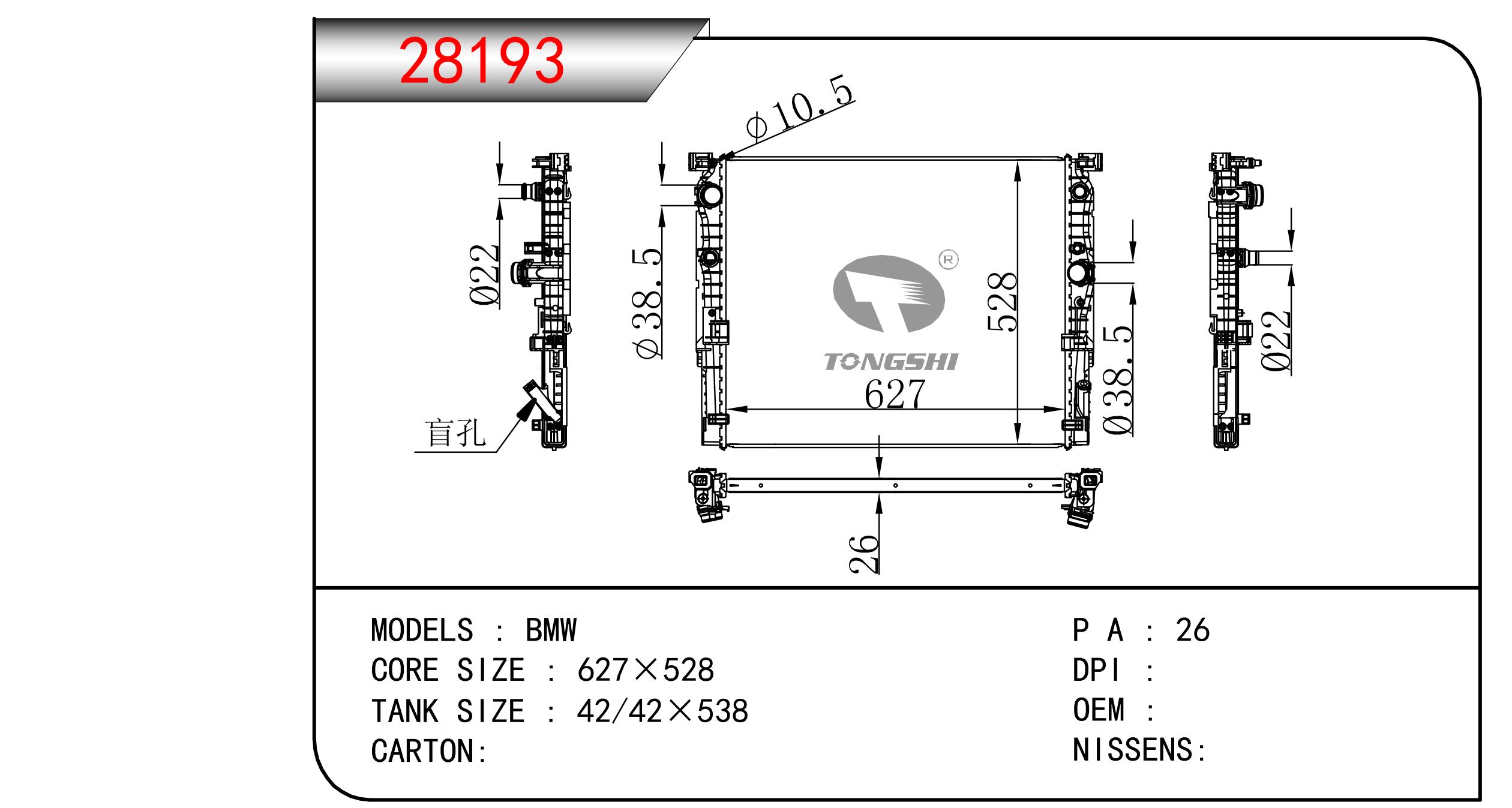 适用于宝马E30 320 i 82-93 AT散热器