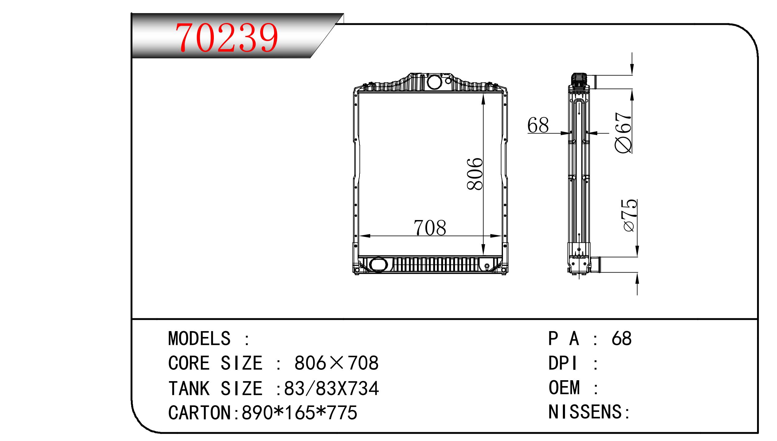 适用于FREIGHTLINER CASCADIA 125/ 113 L6 12.8L 12-13 AT散热器