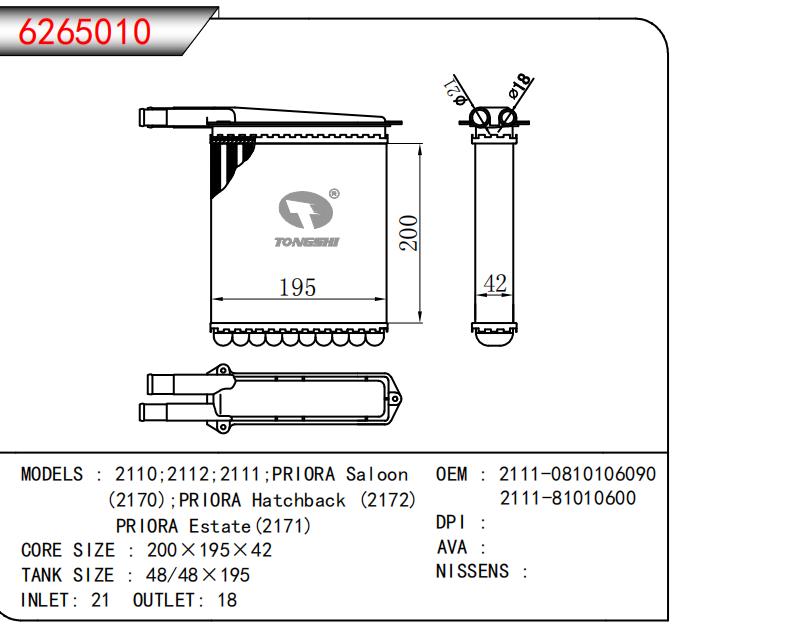 • OEM:2111-0810106090,2111-81010600