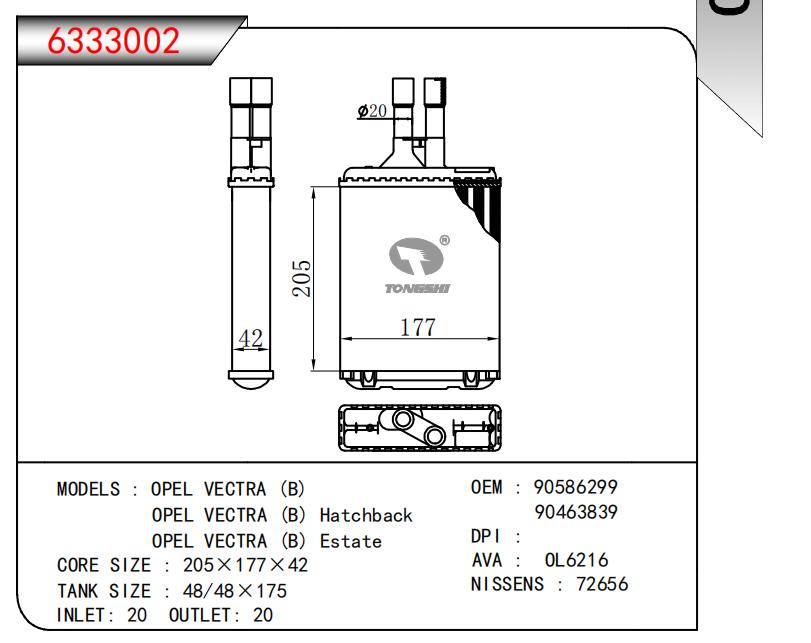 适用于OPEL VECTRA (B)OPEL VECTRA (B)Hatchback OPEL VECTRA(B)Estate OEM:90586299,90463839