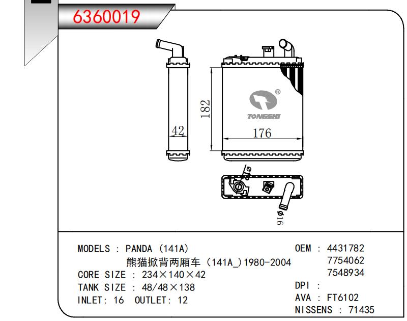 适用于PANDA (141A)熊猫掀背两厢车(141A )1980-2004 OEM:4431782,7754062,7548934