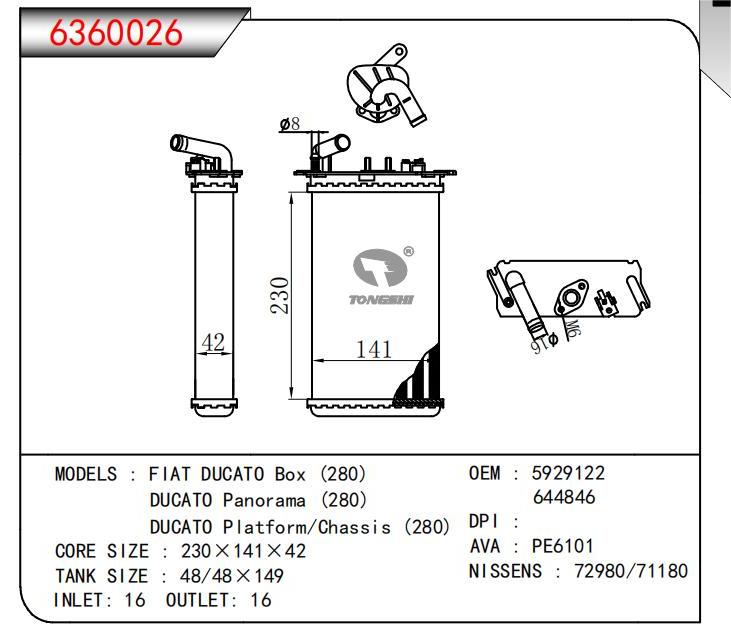 适用于FIAT DUCATO Box(280)DUCATO Panorama(280)DUCATO Platform/Chassis(280) OEM:5929122,644846