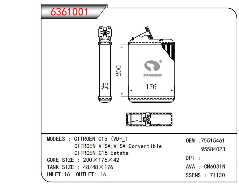 适用于CITROEN C15 (VD-_)CITROEN VISA;VISA ConvertibleCITROEN C15 Estate OEM:75515461,95584023