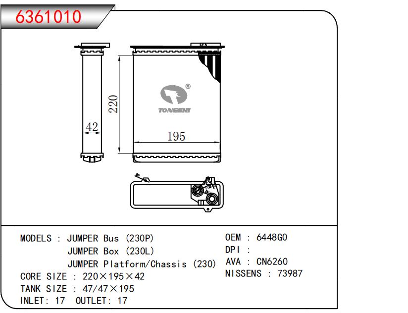 适用于JUMPER Bus (230P)JUMPER Box (230L)JUMPER Platform/Chassis (230) OEM:6448G0