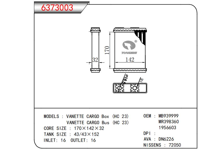 适用于VANETTE CARGO Box (HC 23)VANETTE CARGO Bus (HC 23) OEM:MB939999,MR398360,1956603