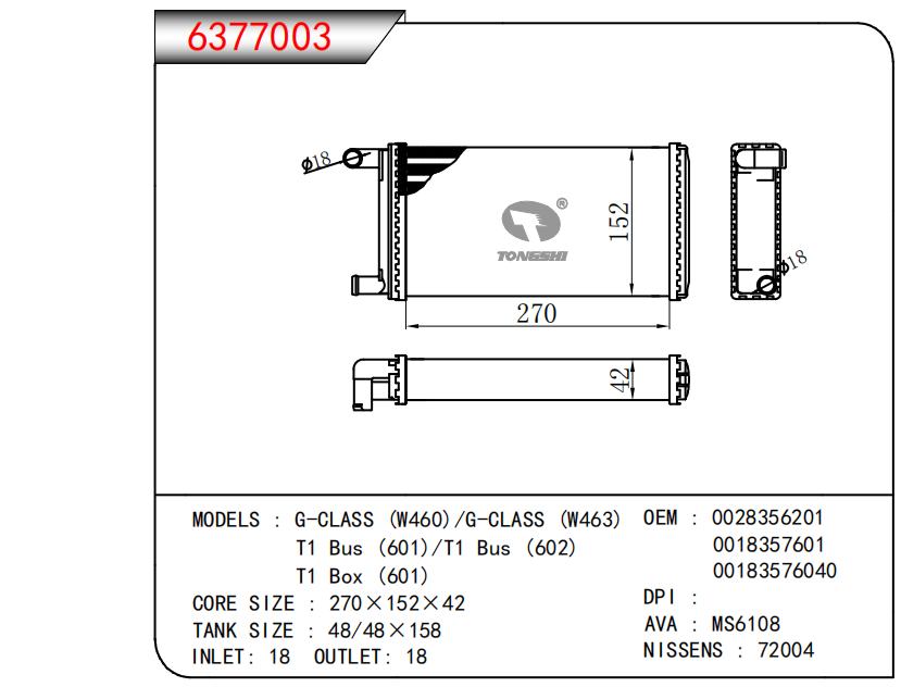 适用于G-CLASS (W460)/G-CLASS (W463)T1 Bus (601)/T1 Bus (602)T1 Box (601) OEM:0028356201,0018357601,00183576040