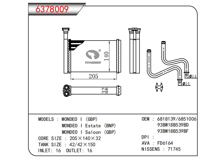 适用于MONDEO I (GBP)(BNP)MONDEO I EstateMONDEO I Saloon (GBP) OEM:6818139,6851006,93BW18B539BD,93BW18B539BF