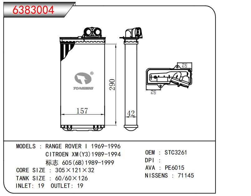 适用于RANGE ROVERI1969-1996 CITROEN XM(Y3)1989-1994 标志 605(6B)1989-1999 OEM:STC3261