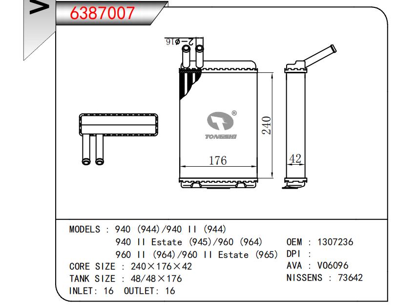 适用于940 (944) /940 11 (944)940 11 Estate (945)/960 (964)960 11 (964)/960 11 Estate(965) OEM:1307236