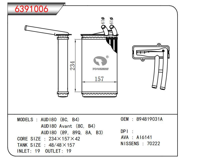 适用于AUD180 (8C,B4)AUD180 Avant (8C,B4)AUD180 (89,89Q,8A, B3) OEM:894819031A