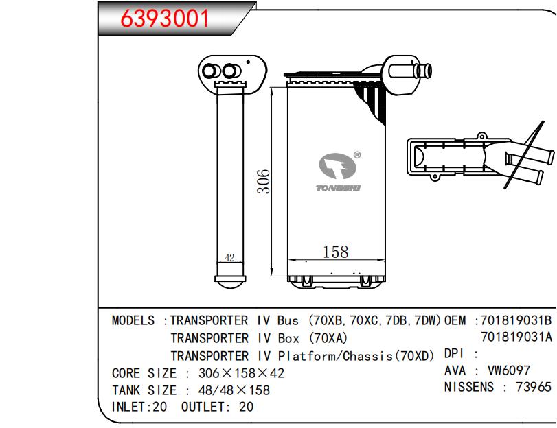 适用于TRANSPORTER IV Bus (70XB,70XC,7DB,7DW)TRANSPORTER IV Box (70XA)TRANSPORTER IV Platform/Chassis(70XD) OEM:701819031B,701819031A