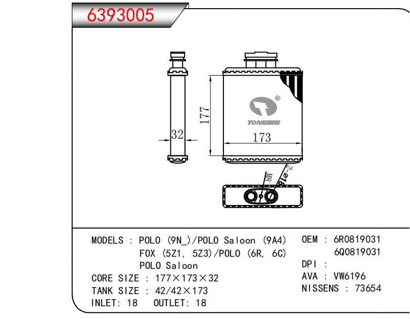 适用于POLO (9N )/POLO Saloon (9A4)FOX (5Z1,5Z3)/POL0 (6R,6C)POLO Saloon