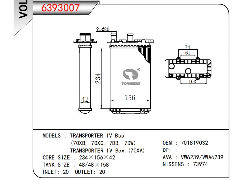 适用于TRANSPORTER IV Bus(70XB,70XC,7DB,7DW)TRANSPORTER IV Box (70XA)