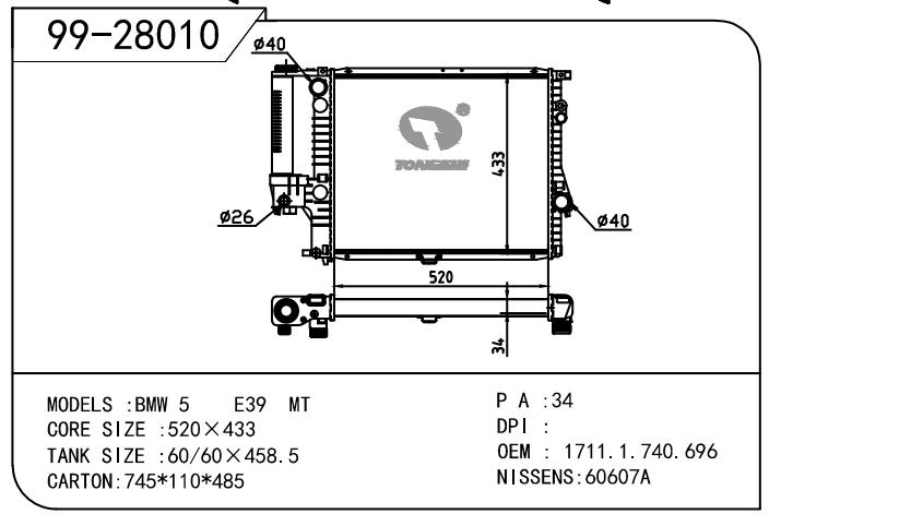 适用于宝马 宝马 5系 E39胀管散热器
