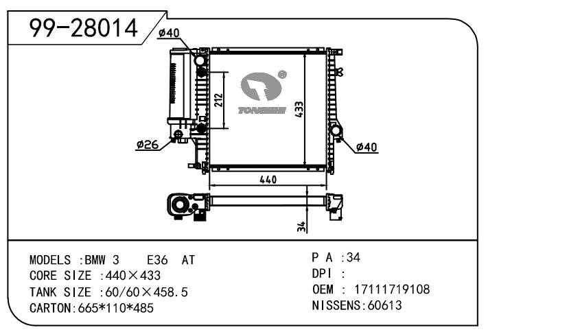 适用于BMW宝马 宝马 3系(E36) OEM:17111719108/17111719136/1723528/1723697/17111723898/17111723697/17111723528/1719108/1719136/1723898
