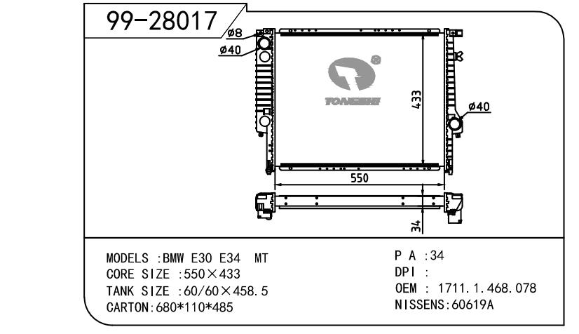 适用于BMW宝马 宝马 OEM:1.468.078/1.702.765/1.719.260/1711.1.468.078/1711.1.702.765/1711.1.719.260/1711.2.241.912/2.241.912/17111723824/17112241910/17102242313/17112241821/17111709456/1723824/2241910/2242313/2241821/1709456