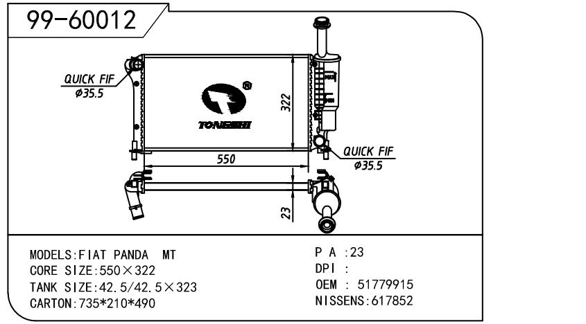 适用于奇瑞瑞虎(新款) MT散热器