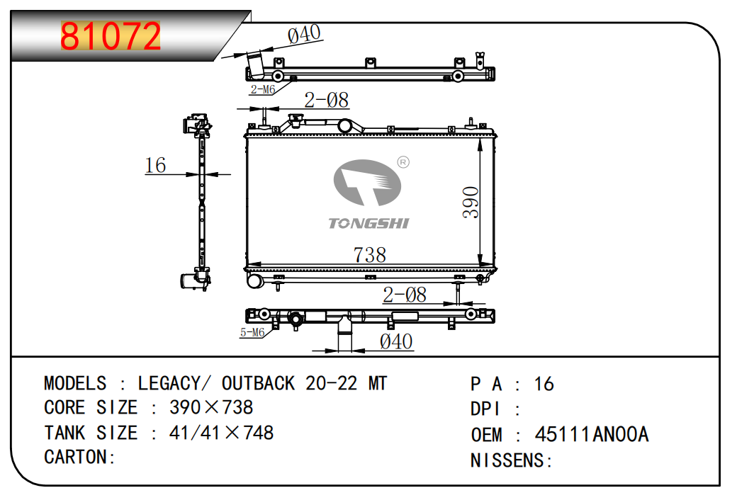 适用于奇瑞瑞虎(新款) MT散热器