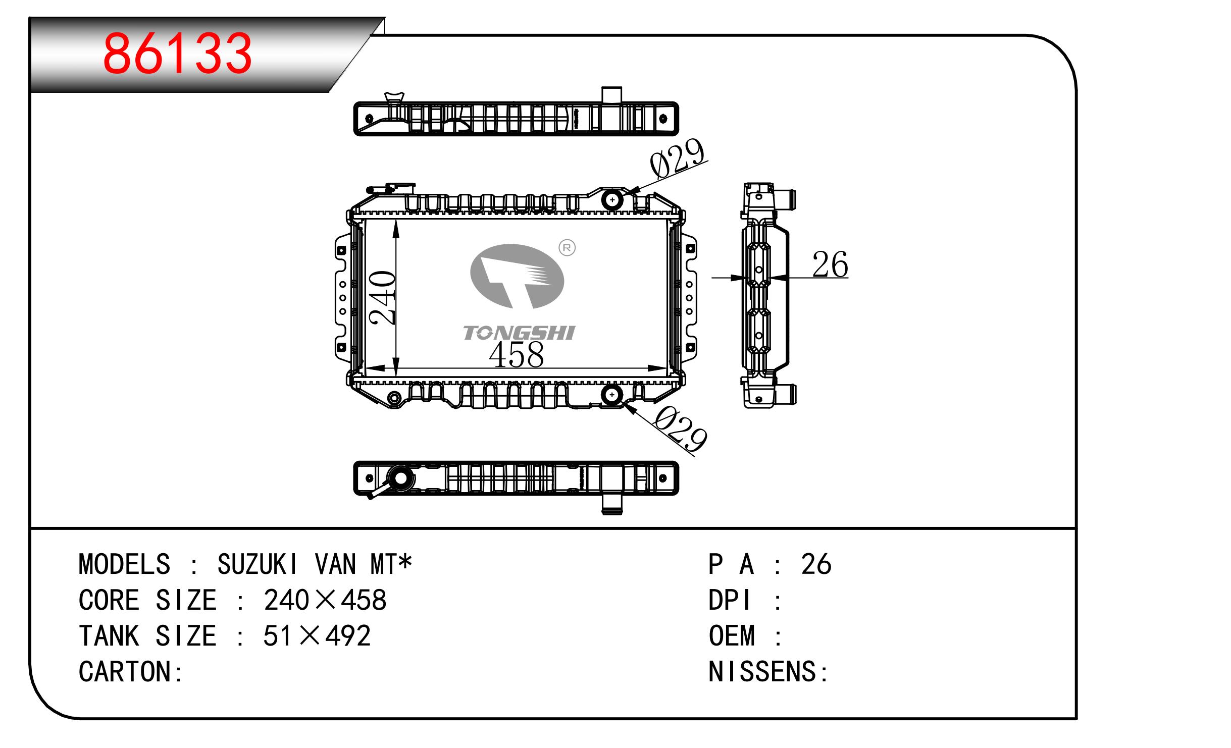 适用于奇瑞瑞虎(新款) MT散热器